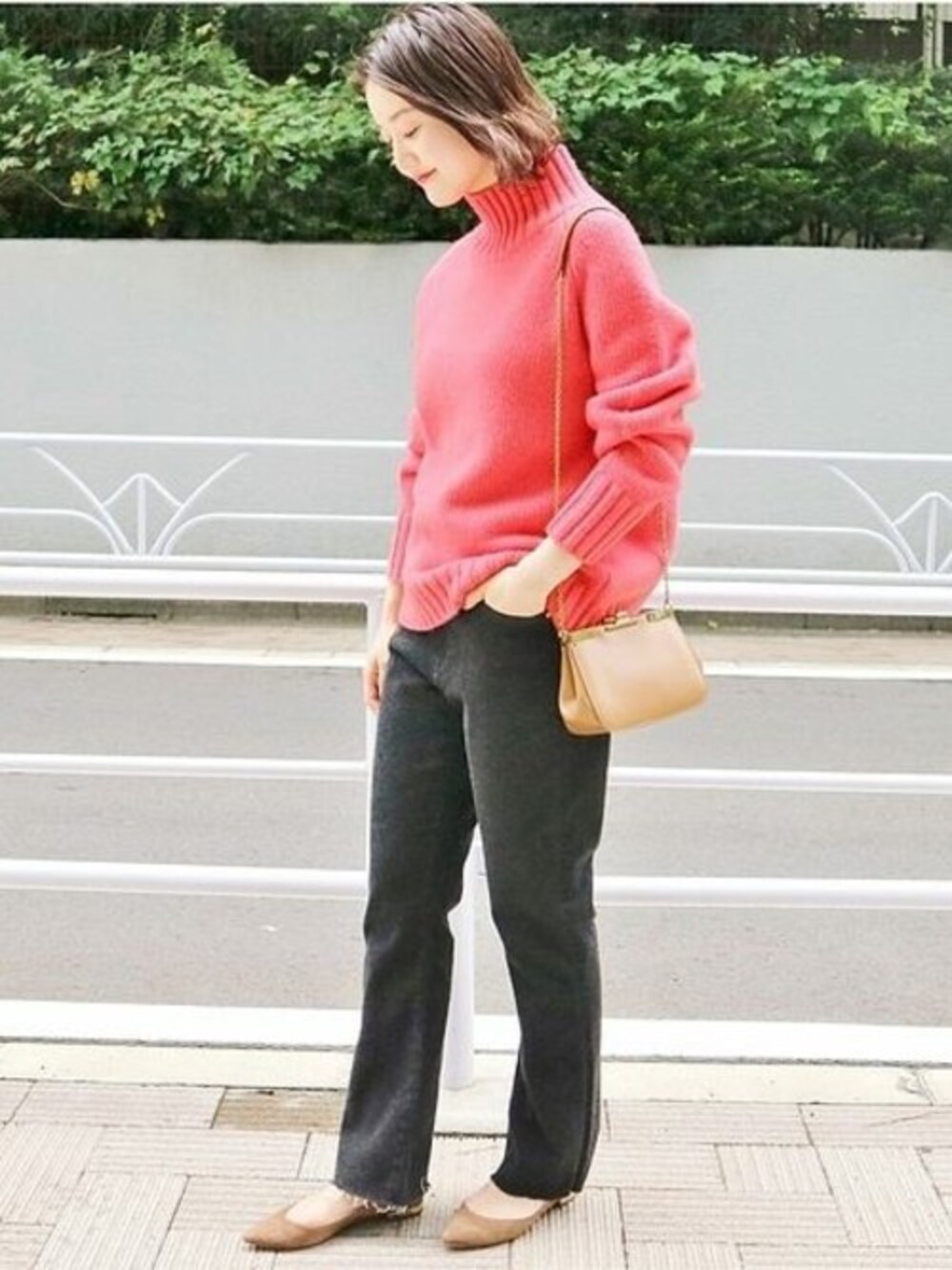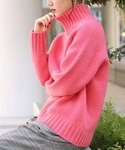 高品質な肌触りのAQUAシリーズは、柔らかいカラー展開も魅力です。 注目のピンクニットは、ハイネックタイプでさらにトレンド感を取り入れて。 きれいめなパンツスタイルで甘さを抑えると◎