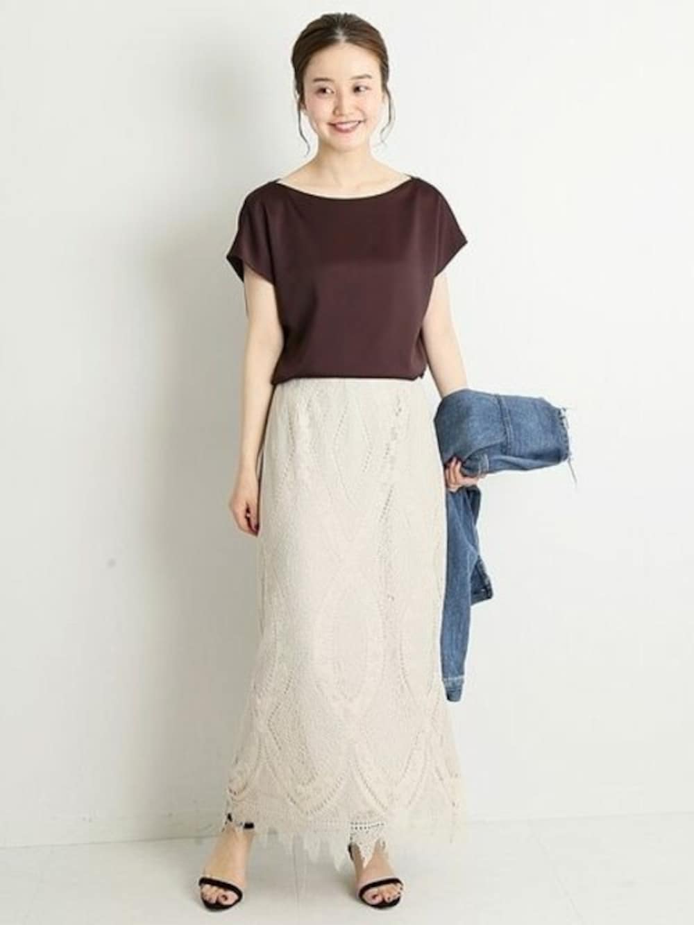 endo(IENA丸の内店(Le Dome))のシャツ/ブラウス「サテンボートネック フレンチスリーブブラウス◆」を使ったコーディネート