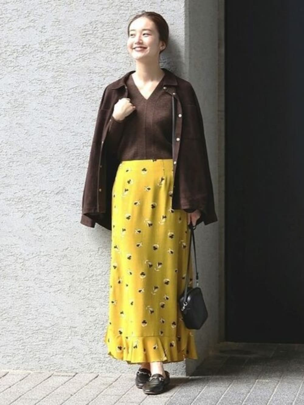 目を惹く鮮やかなイエローは、トレンドのブラウンとも相性良く着ていただけます。