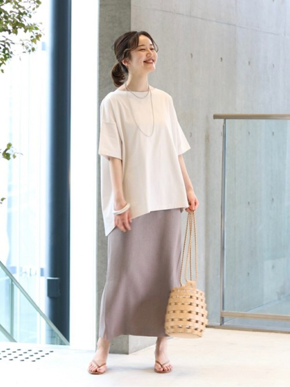ワイドなシルエットがラフな印象のカットソー。 キレイめなタイトスカートと合わせて、シンプルながらもメリハリのあるスタイルに仕上げました。