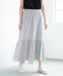 ラウンドテールプルオーバー 身長:162cm/体型:細身/骨格:ウェーブ/普段のサイズ:S/着用サイズ:free/パーソナルカラー:イエベスプリング サイズ感: 着丈は後ろはヒップを覆う安心の丈感で、インでもアウトでも着やすいです。 素材感: さらっとしたコットン素材で透け感も無く、夏は1枚で涼しく着れます。 着用感: 体のラインが出ない程よいゆとりのあるシルエットです。 ストライプギャザーティアードスカート 身長:162cm/体型:細身/骨格:ウェーブ/普段のサイズ:S/着用サイズ:36/パーソナルカラー:イエベスプリング サイズ感:ウエストは丁度よく、後ろの裾は少しだけ長めのでデザイン。 素材感: 軽く涼しげな素材感。程よくハリがありきれいなシルエットがでます。 着用感:透け感もなく、初夏にはさらりと一枚でお召しいただけます。足元はスニーカーとも相性も◎