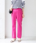 ストライプフリルノースリーブブラウス 身長:162cm/体型:細身/骨格:ウェーブ/普段のサイズ:S/着用サイズ:free/パーソナルカラー:イエベスプリング サイズ感: ヒップに隠れる長さで一枚着ですっきりきれいに着れますが、脇回りは少し開いているのでインナーはしっかり入れることをオススメします。 素材感: さらっとしたコットン素材でドライタッチな手触りで夏も涼しく着れそうです。 着用感:一枚でサラッと着れるような厚みなので、インもしやすかったです。 カラースリムクロップドパンツ 身長:162cm/体型:細身/骨格:ウェーブ/普段のサイズ:S/着用サイズ:36/パーソナルカラー:イエベスプリング サイズ感:すっきりしてますが体のラインも拾いすぎず、きれいめに着やすい印象でお召し頂けます。ウエストにはゴムが入っているので履きやすくウエストもジャストサイズでした。 素材感:さらっとしたドライタッチな素材感。シワになりにくそうな印象でした。 着用感: ウエストのポケットが目線を上げてくれるのでスタイルアップして見えました。