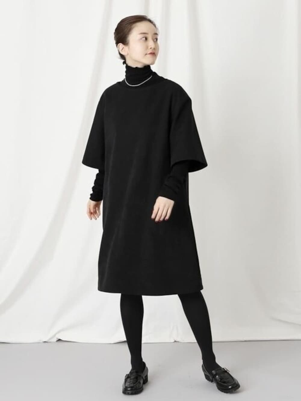 sese スウェードミニワンピース 身長:162cm/体型:細身/骨格:ウェーブ/普段のサイズ:S/着用サイズ:38/パーソナルカラー:イエベスプリング サイズ感:着丈はミニ丈のワンピースなので膝ぐらいの長さ。身幅はゆとりがありますが、アームはスッキリしており、Tシャツのような形です。 素材感:スウェードライクな素材ですが、滑らかで動きやすく、厚みも程よいの着やすいです。重さも感じません。 着用感:オーバーサイズでお袖も半端丈なので、中にタートルやブラウスを着たり、デニムパンツを重ねても素敵でした。
