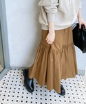 裏毛ロゴスエット 身長:162cm/体型:細身/骨格:ウェーブ/普段のサイズ:S/着用サイズ:free/パーソナルカラー:イエベスプリング 程よくゆるさがあり、丈もヒップがしっかり隠れるくらいの長さです。襟ぐりが広めなので、シャツやタートルなどを重ねても、顔まわりスッキリ見えます。 Olmetex ナイロンティアードスカート 身長:162cm/体型:細身/骨格:ウェーブ/普段のサイズ:S/着用サイズ:36/パーソナルカラー:イエベスプリング サイズ感:腰回りは広がらないので、意外とスッキリ見えました。踝が見える丈感。ウエストはゴムなので着脱しやすいです。 素材感: 独特のしわ感と綾目の立った表面感で少しカサカサと音がなるような素材。 着用感:広がりすぎないシルエットのティアードスカートなのでボリュームのあるトップスとも合わせやすく、質感の違いを楽しめます。