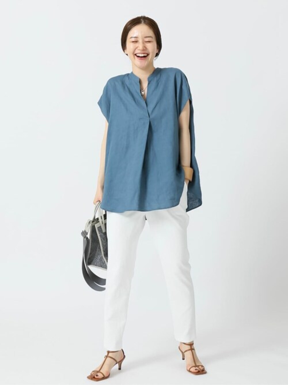 endo(IENA丸の内店(Le Dome))のシャツ/ブラウス「リネンノースリーブスキッパーシャツ」を使ったコーディネート