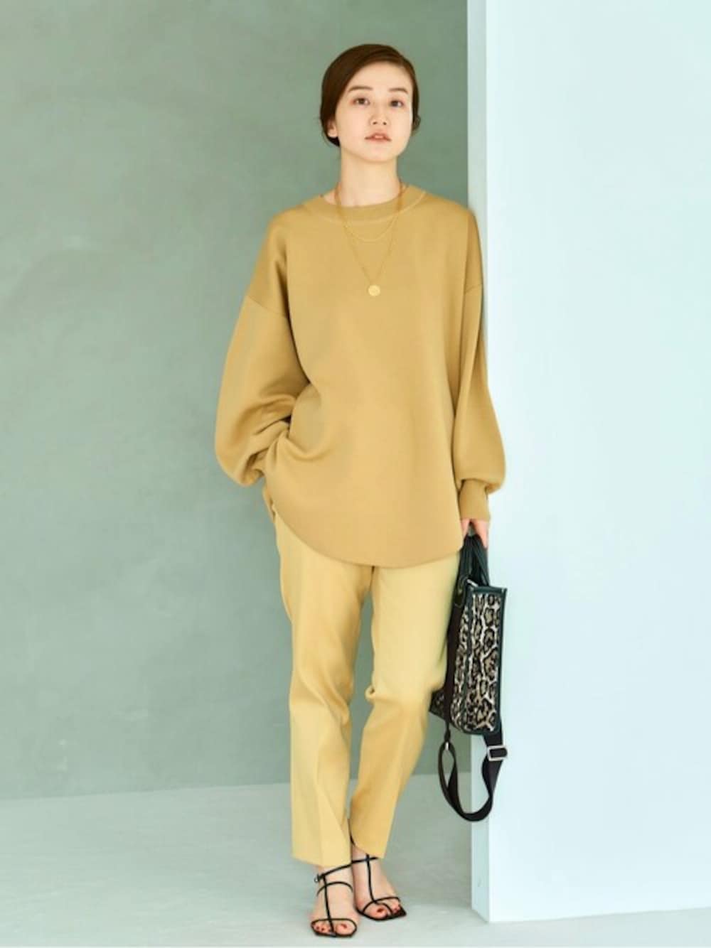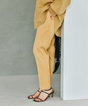 スーパーファインスムースプルオーバー 身長:162cm/体型:細身/骨格:ウェーブ/普段のサイズ:S/着用サイズ:free/パーソナルカラー:イエベスプリング ほんのりとした袖の膨らみがかわいい。ゆとりがあるシルエットでインしやすいようなサイドの切り替えがあり、裾のラウンドしているデザインも素敵です。スエットのようなカジュアル感もあるので気がれなく着やすいと思います。厚みはスエットぐらいです。シワにもなりにくそうな素材。滑らかな膨らみのある素材でチクチク感もなく、とても着やすいです。 T/W サテンストレッチパンツ 身長:162cm/体型:細身/骨格:ウェーブ/普段のサイズ:S/着用サイズ:36/パーソナルカラー:イエベスプリング 36サイズで腰で止まり、インもできるぐらいのゆとりがあります。丈も踝あたりでちょうど良いです。ウールの程よい光沢感もあり表面のさらりとしたポリエステルで、肌に触れる面はチクチク感もなく、滑らかで履き心地が良いです。程よい厚みがあるので足のラインを拾いにくく、裏地はついていませんが、秋口から冬まで履いていただけます。