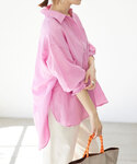 身長:162cm/体型:細身/骨格:ウェーブ/普段のサイズ:S/20代後半/パーソナルカラー:イエベスプリング 【ラミーリヨセルスリットシャツ】 着用サイズ:38 昨年も大人気で即完した”ラミーリヨセルシリーズ”から新型が登場しました〇 軽くてさらっとした着心地はそのままに、ベーシックに着用いただきやすいデザインに。 多少ゆとりのあるサイズ感なので、きちんと感をもってきたい方は普段サイズ、ややルーズに着用したい方はワンサイズあげていただくのがオススメです。 しっかりインしたスタイリングもこのビビットなピンクなら一気にお洒落顔に。お気に入りのスタイリングです*
