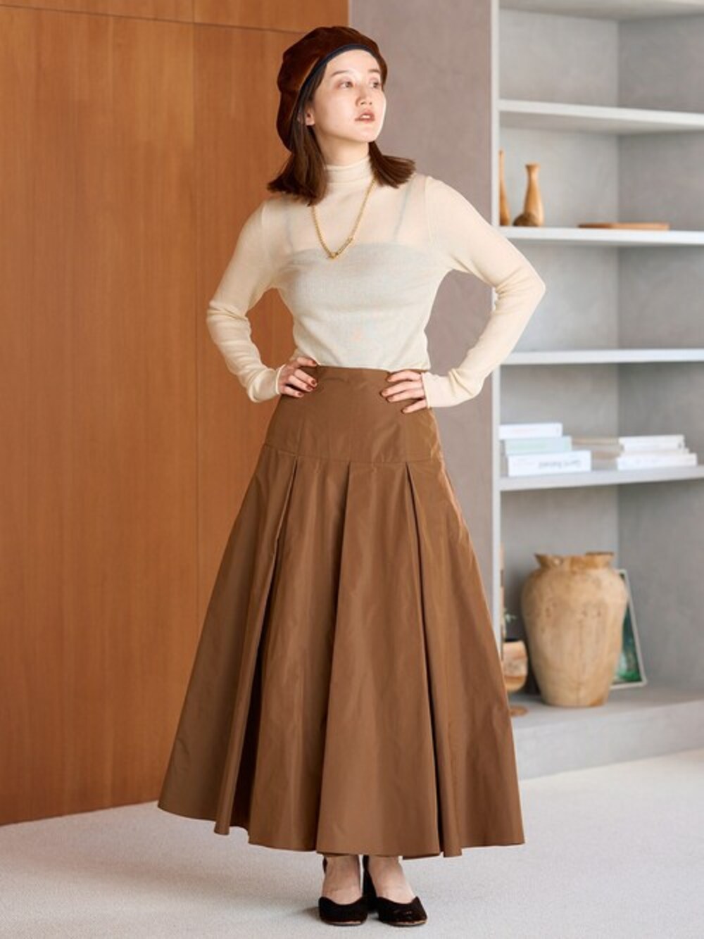 endo(IENA丸の内店(Le Dome))のニット/セーター「シアーリブ ボトルネックプルオーバー」を使ったコーディネート