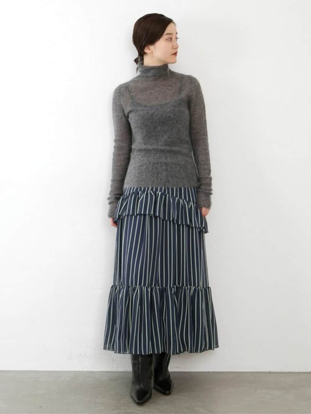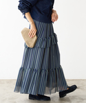ヨーリューティアードスカート 身長:162cm/体型:細身/骨格:ウェーブ/普段のサイズ:S/着用サイズ:36/パーソナルカラー:イエベスプリング 軽やかな動きが出るティアードスカート。ストライプの柄も相まってすっきり見える印象。生地もさらっとしているので晩夏からすぐ履けるます。