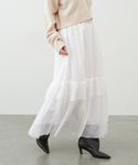 ACADEMIEスエット 着丈も短く、スッキリとバランス良く着こなせるスエット。袖のゆとりも適度で中にシャツ、ブラウス、カットソーをレイヤードしても可愛いです。 カットジャガードティアードスカート 身長:162cm/体型:細身/骨格:ウェーブ/普段のサイズ:S/着用サイズ:36/パーソナルカラー:イエベスプリング ウエストはゴムで履き心地もよく、長さも適度にあるので広がりすぎないシルエット。甘さのあるティアードスカートにカジュアルなスエットを合わせて。軽やかなスカートなので足元にボリュームのあるシューズや厚手のニット、長さのあるコートなど合わせても重たくなりすぎない印象。