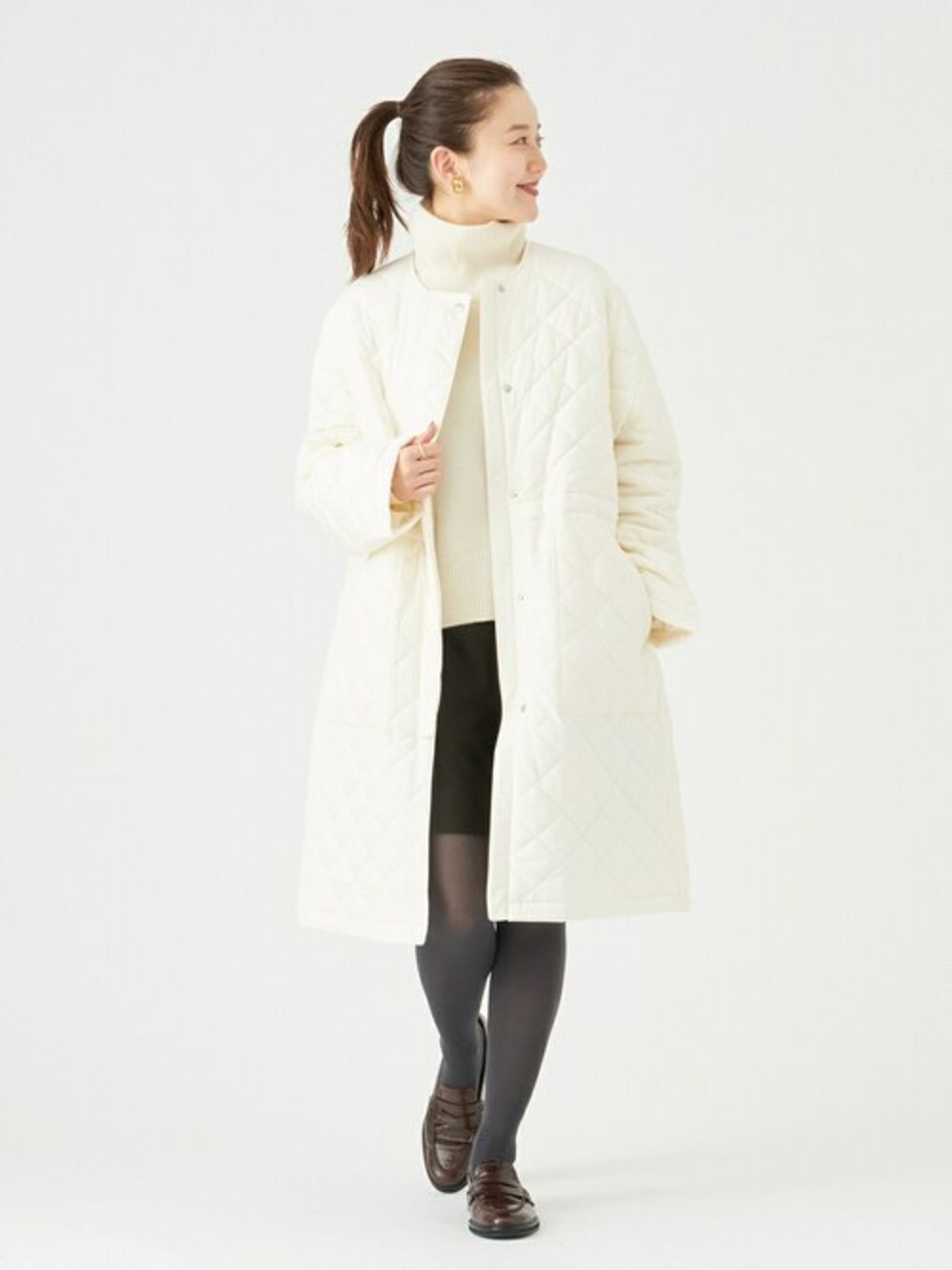 endo(IENA丸の内店(Le Dome))のその他アウター「ノーカラーキルティングコート」を使ったコーディネート