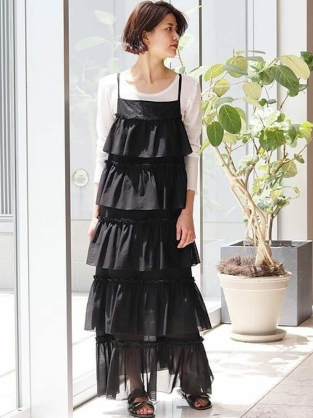 KIMのワンピース「IENA LA BOUCLE 綿ボイルティアードドレス◆」を使ったコーディネート