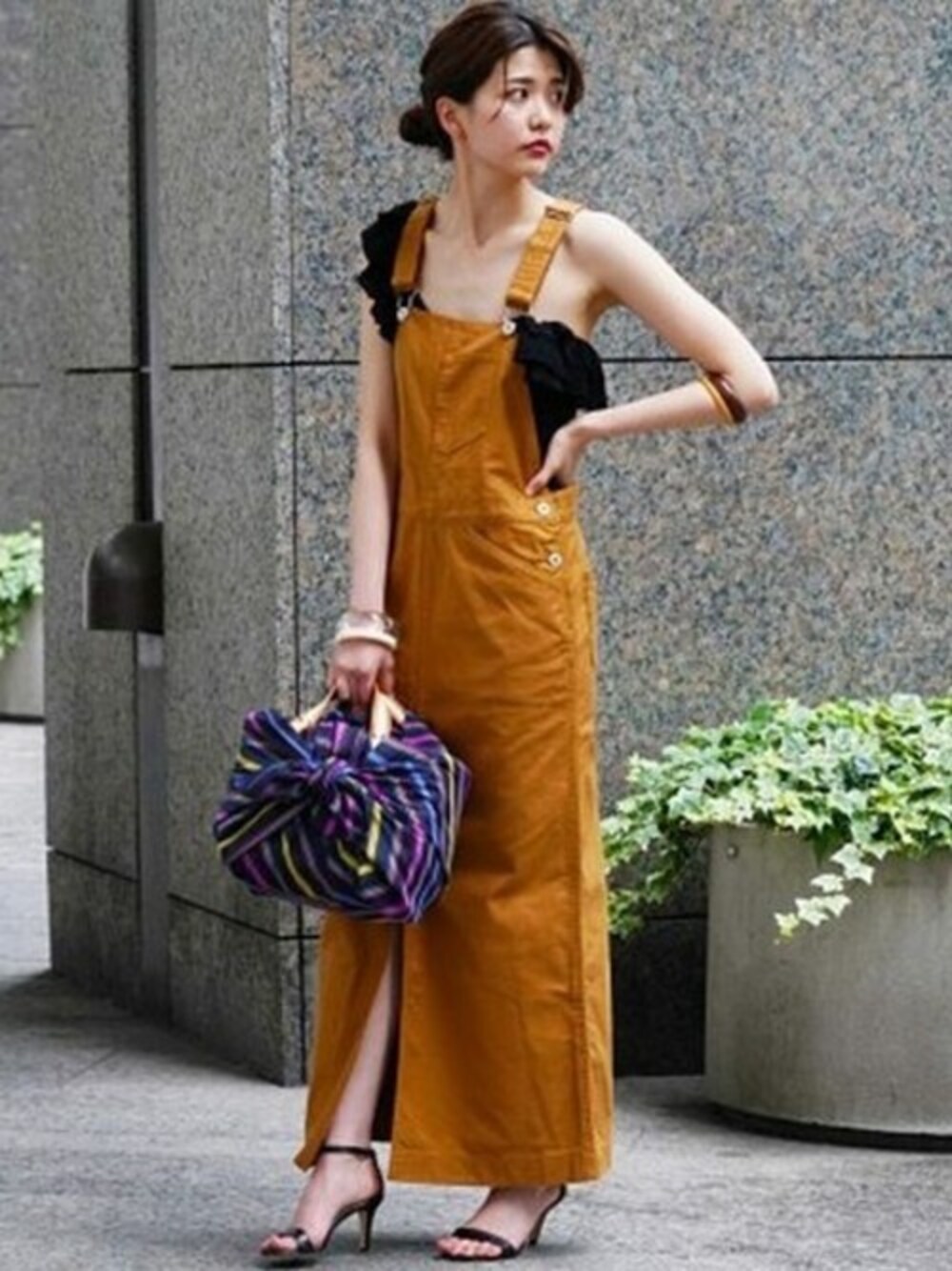 キャメルカラーが新鮮なジャンパースカート。 甘い雰囲気のトップスも、大人のバランスで着こなせるのが嬉しい。