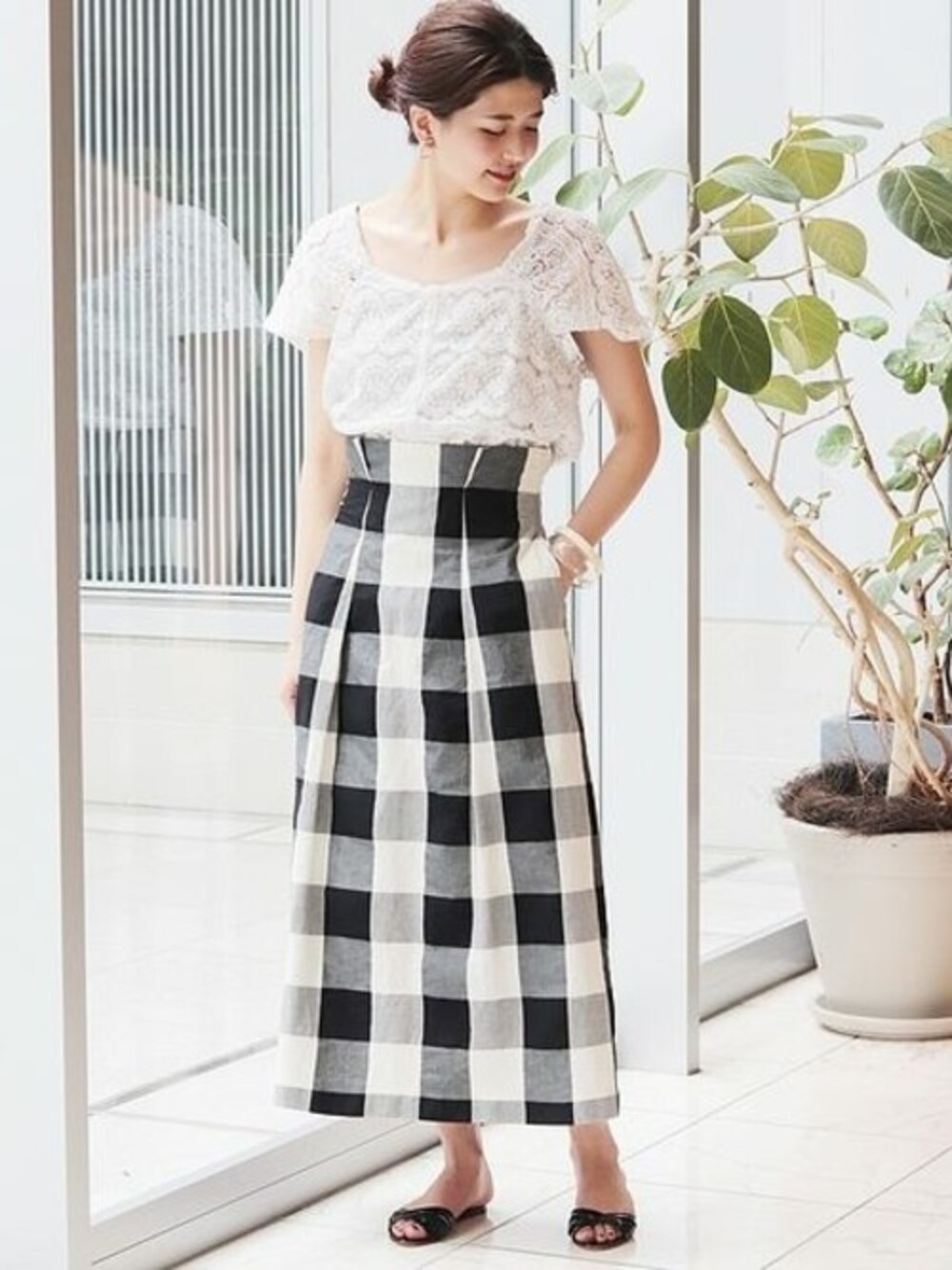 ヴィンテージライクなレースブラウス。 Iラインシルエットのスカートにきゅっとインして。