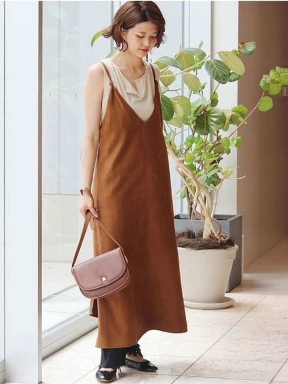 KIMのワンピース「IENA LA BOUCLE エコスウェードジャンパースカート◆」を使ったコーディネート
