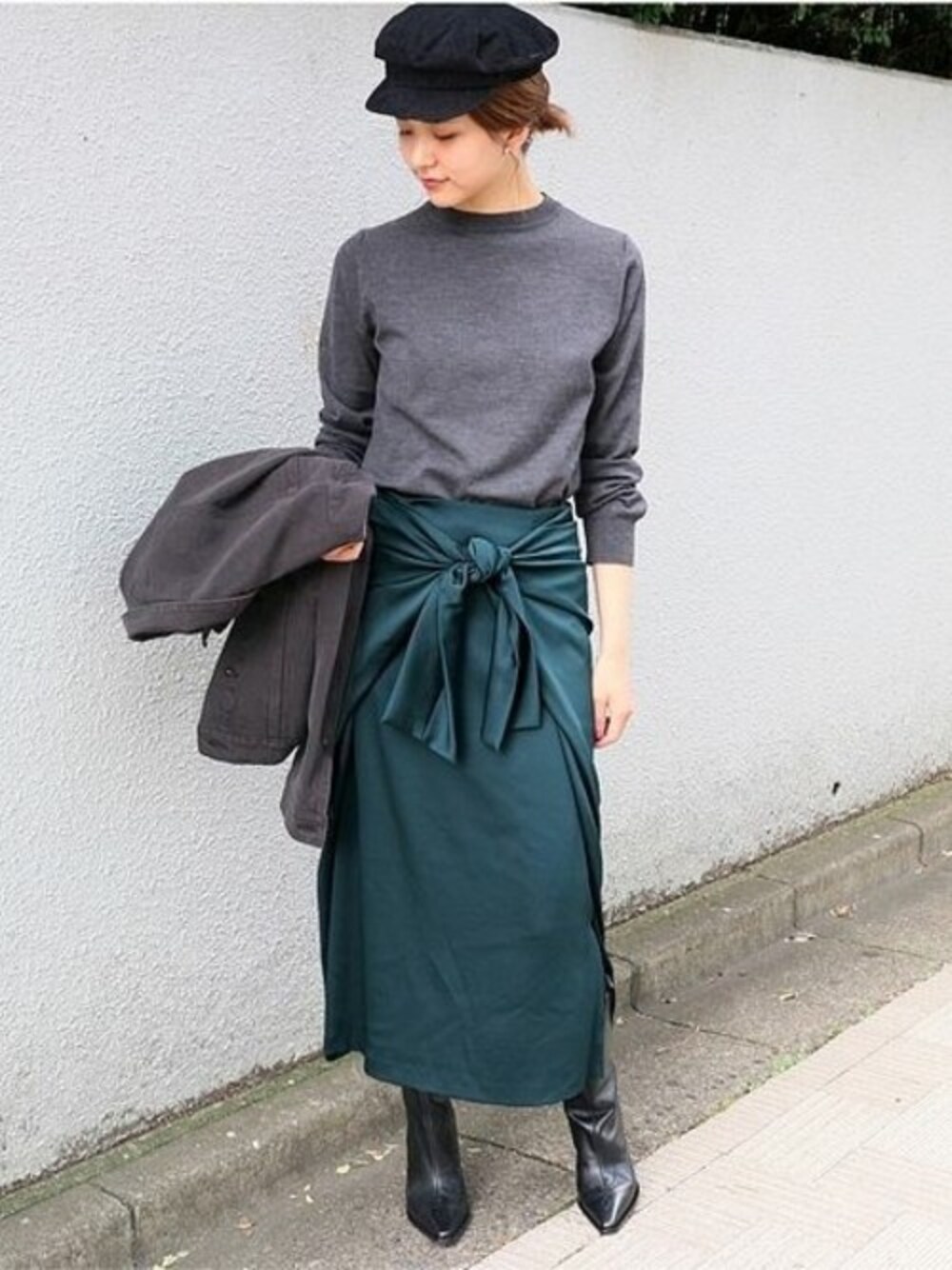フロントのタックリボンがウエストをすっきりと見せ、華やかな印象に。 コンパクトなトップスと合わせて頂くと、脚長効果も抜群です。