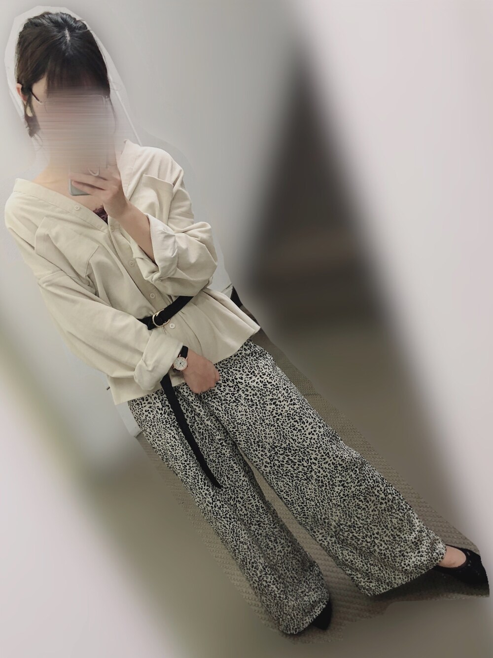 今日はオフホワイトで統一してみました! ワントーンコーデ可愛いですよね! インナーはワインレッドなのでイヤリングもワインレッドにしてみました! モフモフのイヤリングなので少しづつ冬感を取り入れています⛄️💕 長めのパンツには足の甲が見えるパンプスがおすすめ!抜け感も出るし足も綺麗に見えます( ◜௰◝ ) とろみのある生地のパンツは楽ちんなのに綺麗な感じも出してくれてありがたいです(笑) 写真は撮れなかったけどアウターはくすんだピンク色のブルゾンを着ました! シャツのボタンを閉めて着ると可愛いです!レオパード柄 × ピンクは最高に可愛いですね😍😍お気に入りです!