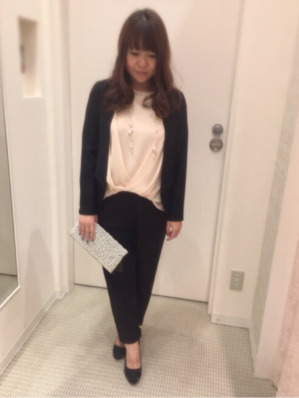 結婚式コーデ✩⡱ 人気のセットアップ。 ドレープのようなゆるっとしたトップス。 ロングのパールネックレスもセットに♡