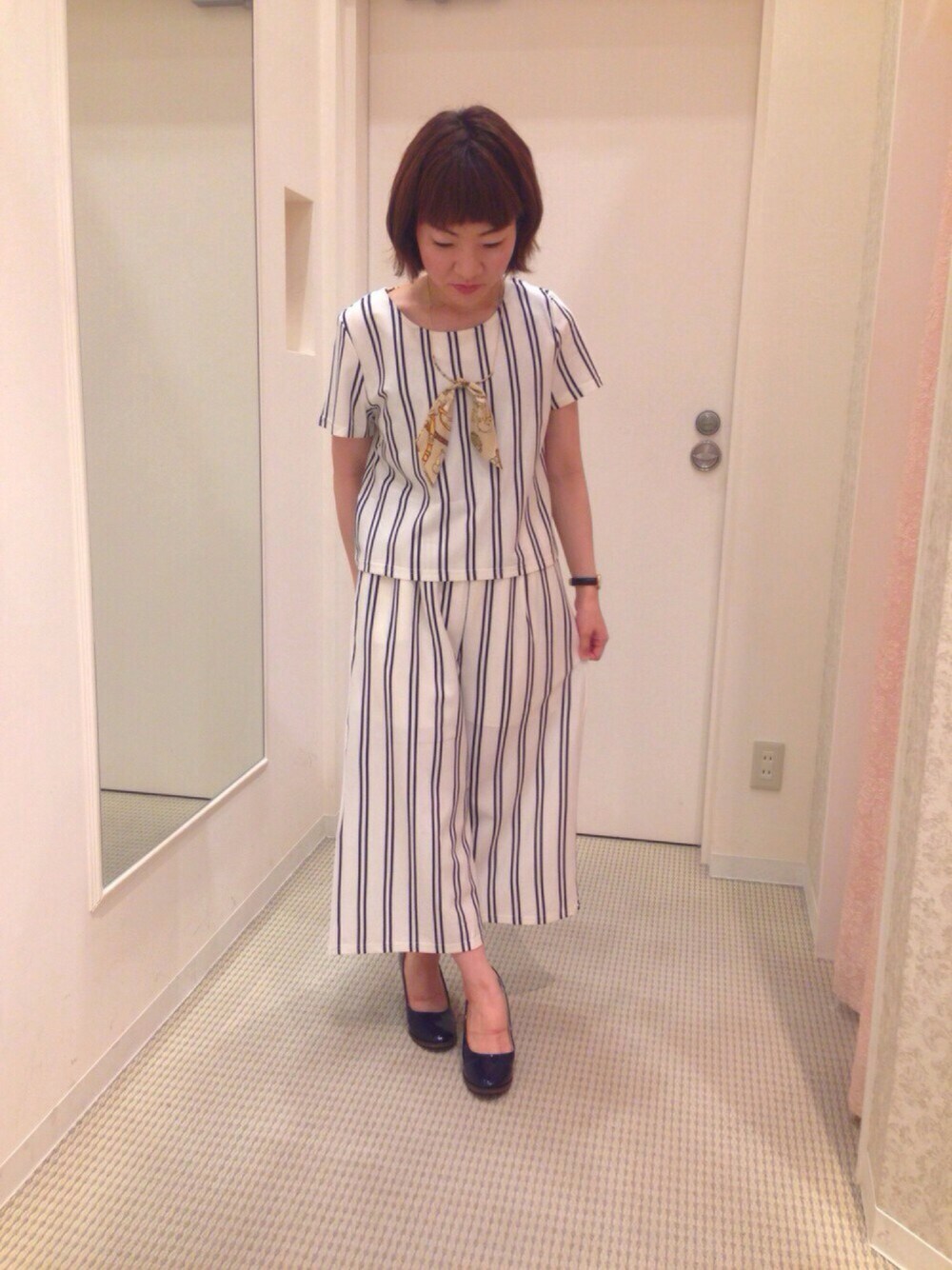 INGRIDつくば店です。 ジャージ素材の セットアップで カジュアルキレイめコーデです。 スカーフ風ネックレスで 今年らしい ワンポイントをプラス。 トップス、ボトム 別々での着まわし 楽しんでみて下さい◎