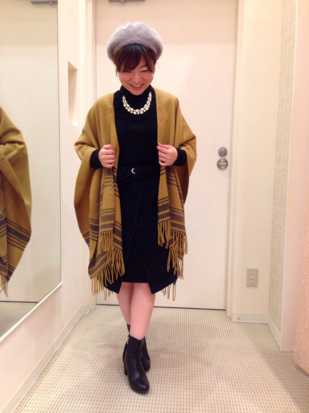 INGRIDつくば店です。 コートはまだ早いし… みんなと違うオシャレを楽しみたい そんな時にポンチョ! 可愛くて、軽くて、暖かいです♡ カジュアルスタイルに合う ライン柄が ワンポイントに! 中はシンプルに ブラックコーデ。