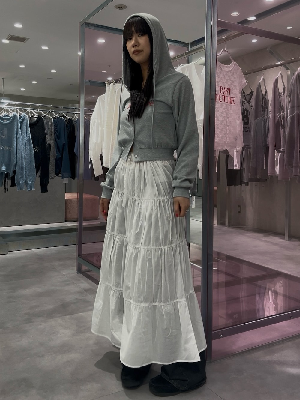 ナナ(WHO'S WHO gallery福岡ソラリアプラザ店)のスカート「ギャザーロングスカート」を使ったコーディネート