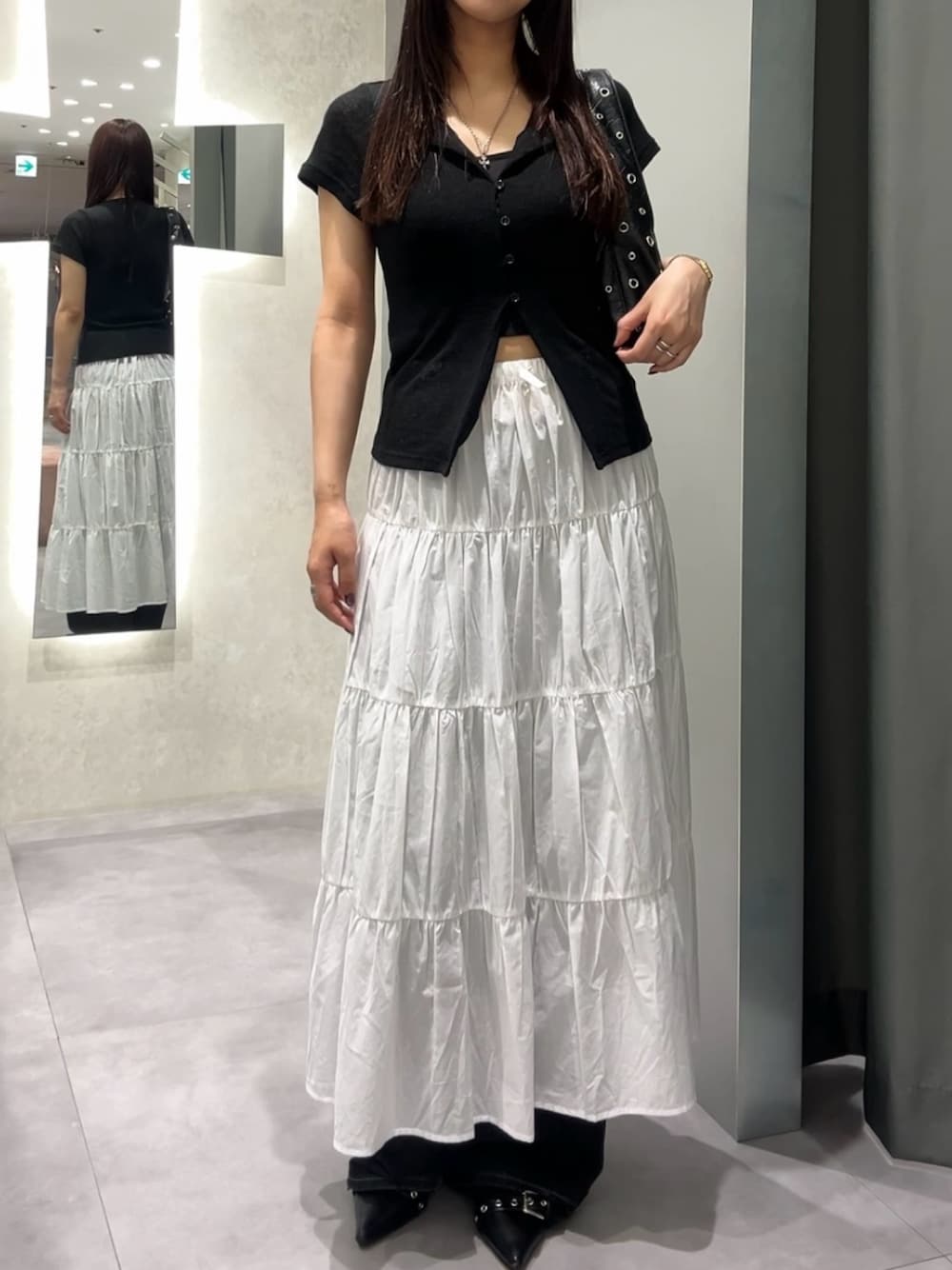 ナナ(WHO'S WHO gallery福岡ソラリアプラザ店)のカーディガン/ボレロ「シアーナロー半袖カーディガン」を使ったコーディネート