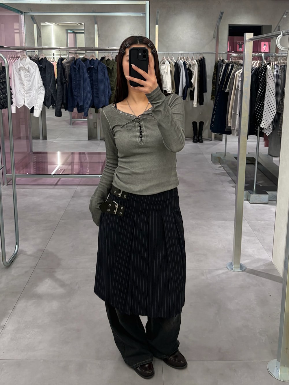ナナ(WHO'S WHO gallery福岡ソラリアプラザ店)のTシャツ/カットソー「プロセストレースアップトップス」を使ったコーディネート