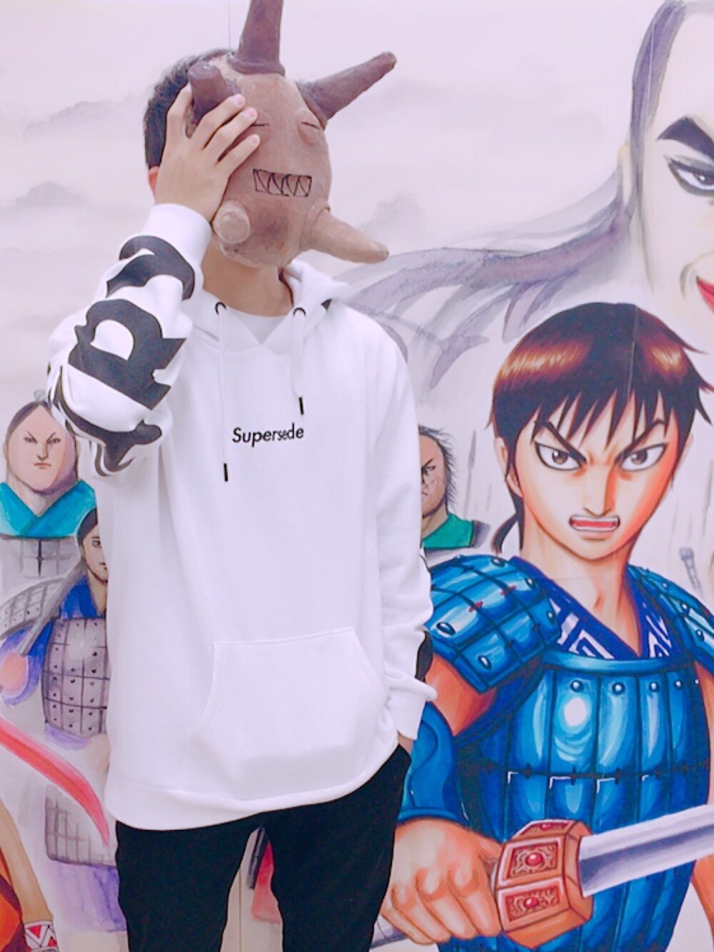 ホワイト系のパーカーを着用したメンズの春コーディネートの1枚目の写真