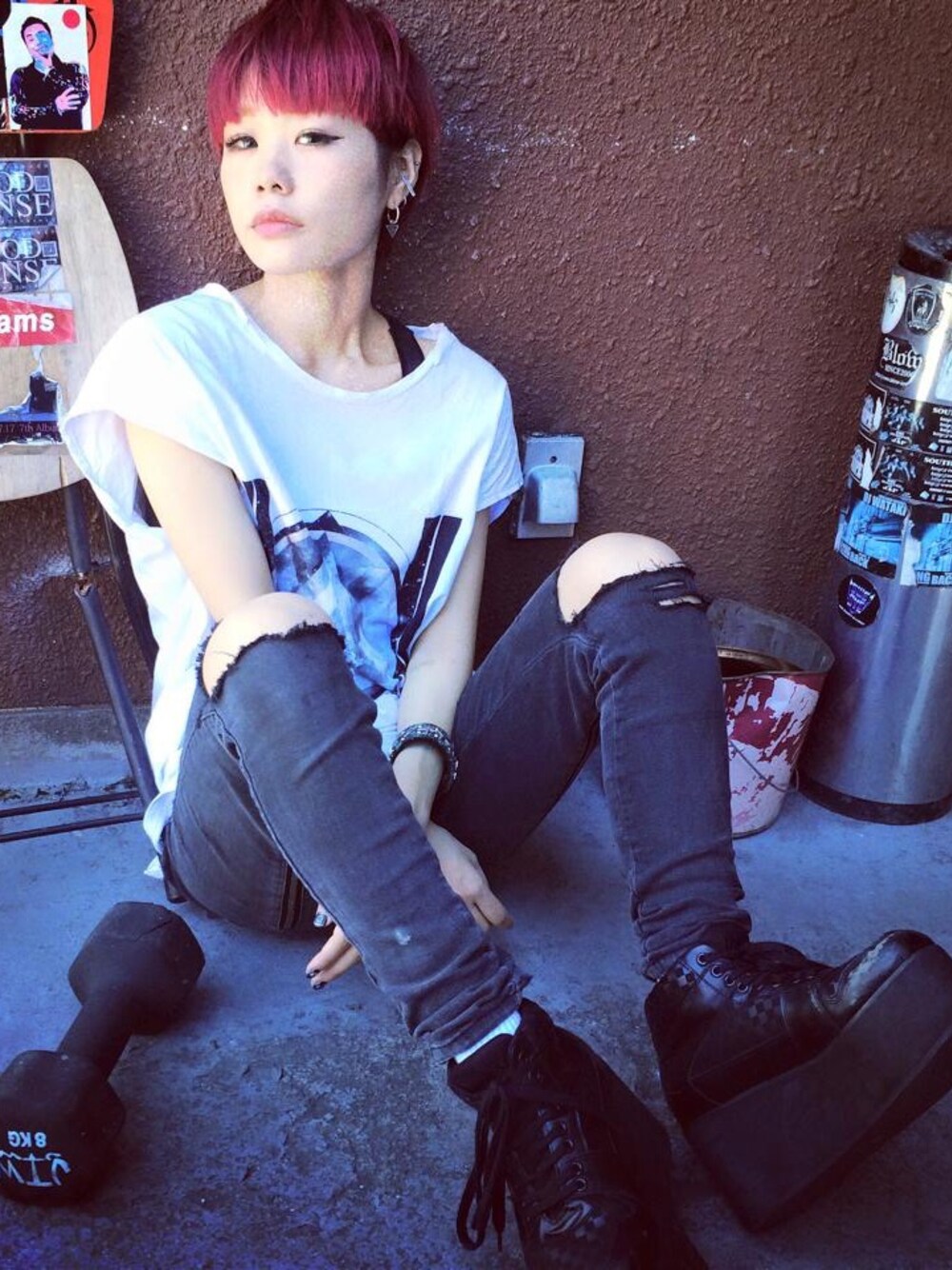 撮影の時のです、 PARADOXのTシャツが お気に入り。 かなりロックっぽいですが popな音楽やってます