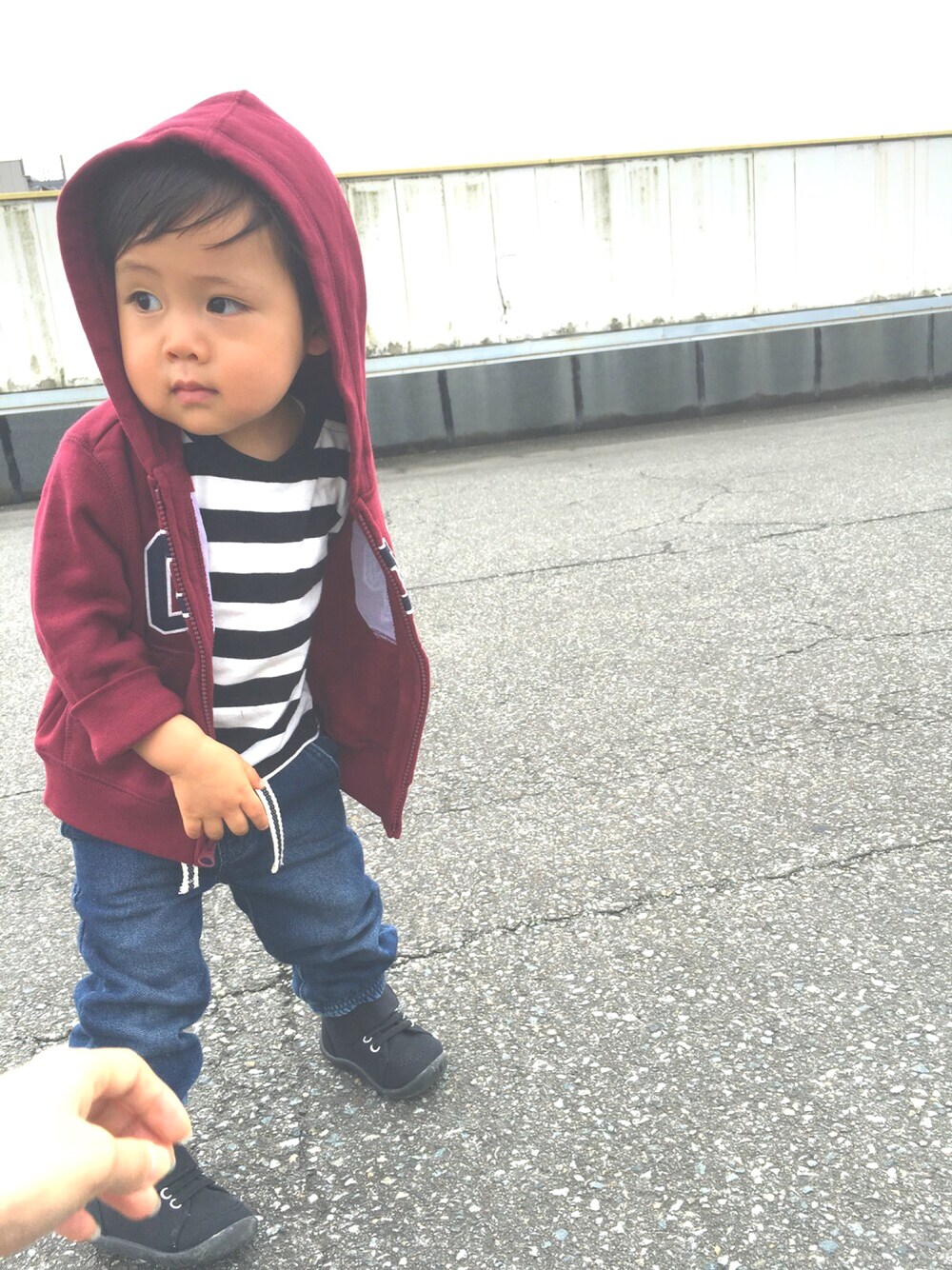 GAPロゴパーカーの 悪ガキコーデ💕 手を振りほどかれる😂