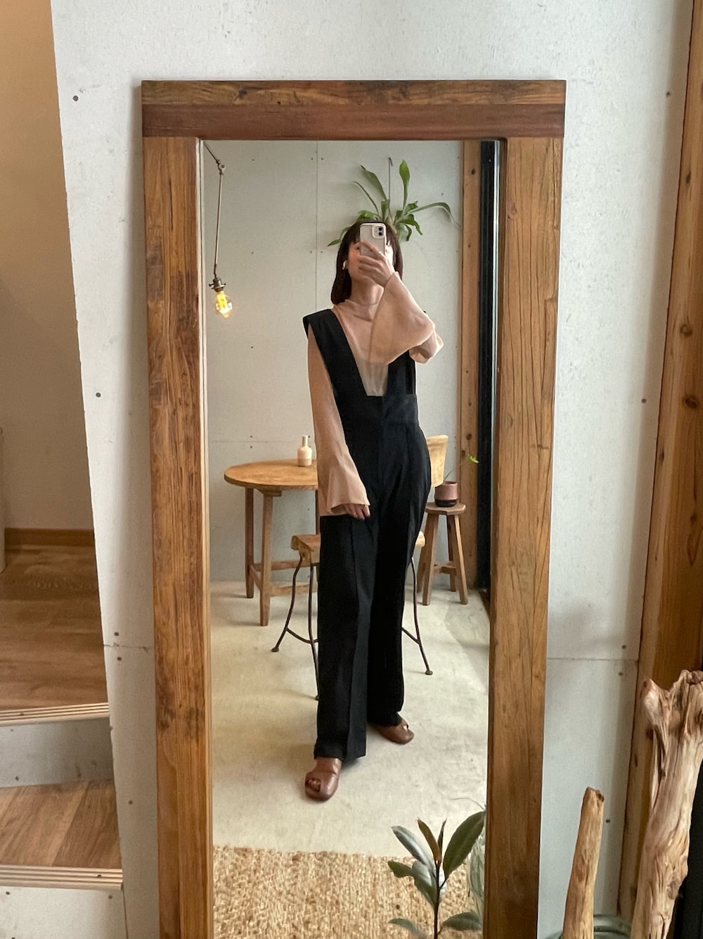 いいのサロペット/オーバーオール「【パンツとしても使える!】3WAYワイドVネック/ハイウエストスラックスサロペット」を使ったコーディネート