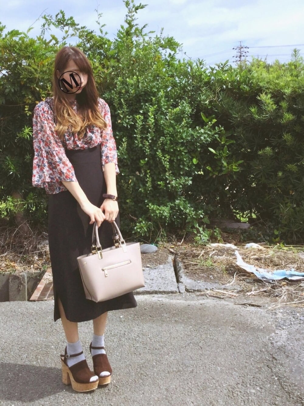 ちゃんりさのシャツ/ブラウス「レトロフラワーシャーリングブラウス」を使ったコーディネート