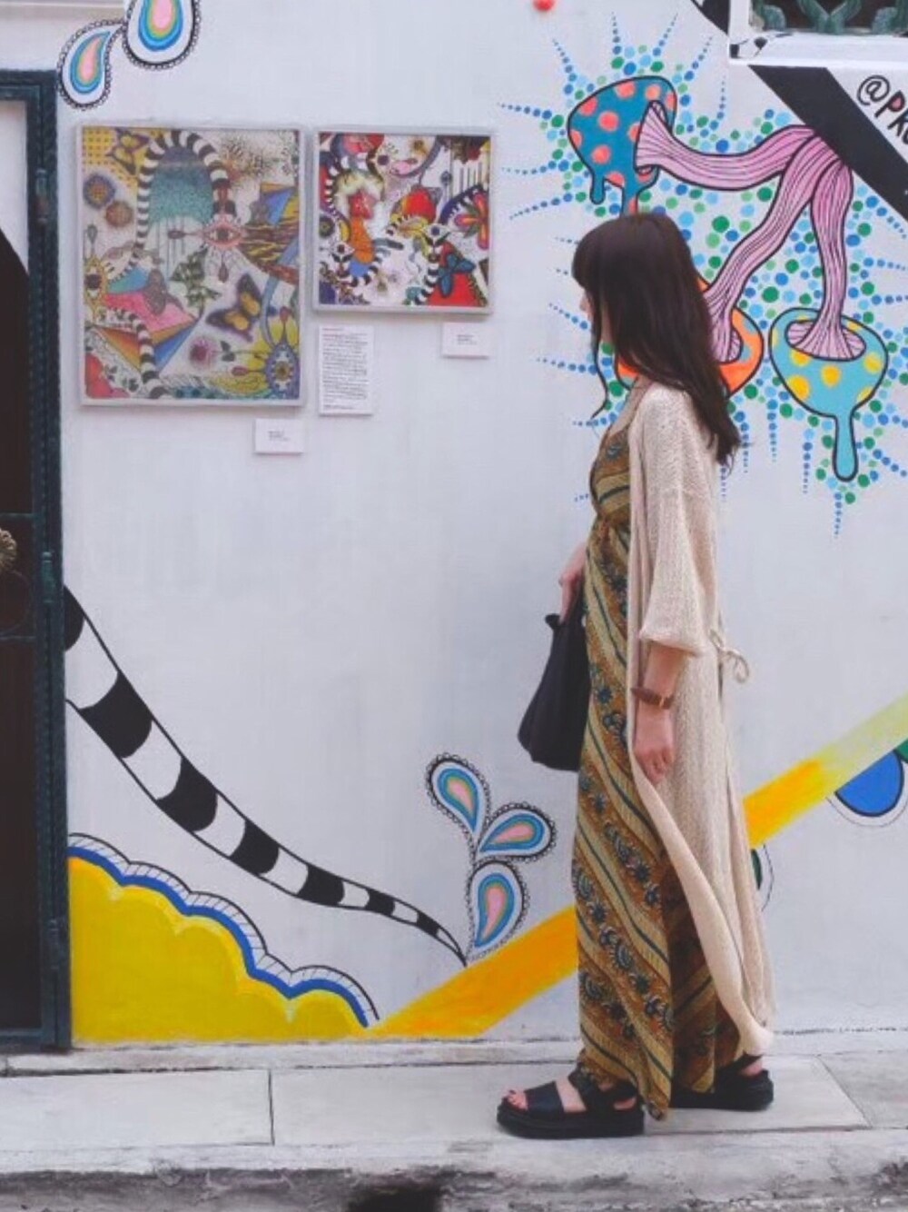 シンガポール🇸🇬に旅行✈️に いったときの写真です😌✨ このワンピースはわたしが生活している国の伝統衣装で染め布地の特産品です! でも仕立て屋に頼んだらこれは素材がテロテロしているのでお値段はお高めでした😂 出国する前にレトロガールで買ったカーディガンはこのワンピースにめっちゃ合うので買ってよかった〜😭って何度も思いました☺️💕 このマーチンの靴はめっちゃ履きやすくて疲れにくい!!! 厚底だから重そうに見えるけどそ思ったより重くなくて旅行とか長く歩くときは本当に最適◎ わたしが暮らしていた地域でのマーチンは13000円くらいで買えたのでお得でした😊 この写真だとあまり、ワンピースの正面がわかりにくいと思うので他にも写真を載せておきます😍