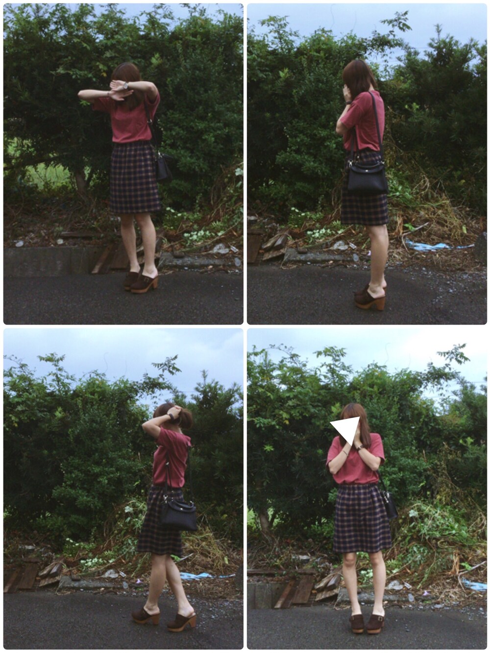 2週間前のコーデです! 雨上がりで画質悪くて見にくいと思いますが😭 秋コーデを目的にしました!!! このスカートは新しく買ったものです!! この柄のチェックスカート可愛くないですか!! でもこんなあわせかたであってるのかどうか、、、