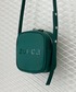 ユニセックスのバンドカラーシャツとプリーツパンツでモノトーンコーデ。グリーンのミニバッグを差し色に合わせました。