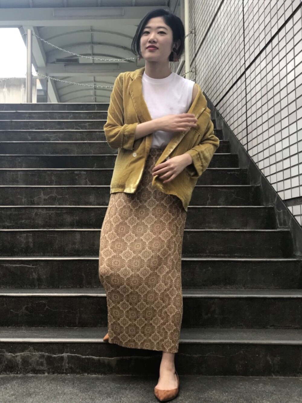 CHARLIEのスカート「オリエンタルプリーツタイトスカート」を使ったコーディネート