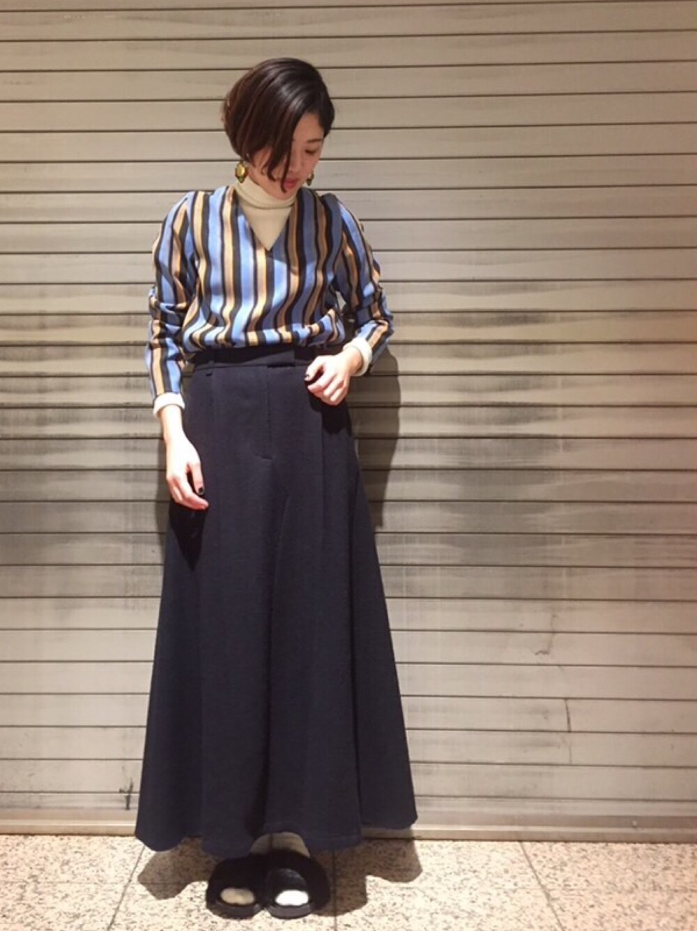 レトロな柄ブラウスにタートルニットを重ねて、 ウールのマキシスカートと合わせた Vintage likeなコーディネート。 只今、天王寺ミオ店ではチェコガラスを使ったアクセサリーオーダーも行っております。 11/6(金)までですので、お見逃しなく!