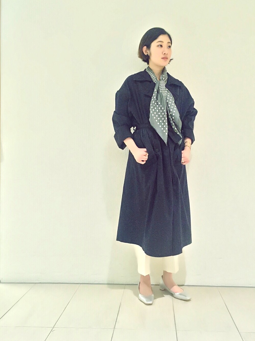 春の定番トレンチコート。 今年はとろみのあるテロっとした生地がトレンドで、 「テロンチ」とも呼ばれていますね。 オーバーサイズで、かっちりしすぎないのも素敵。 ボタンを閉めてウエストのリボンでギュっと絞る着方が私のオススメです。