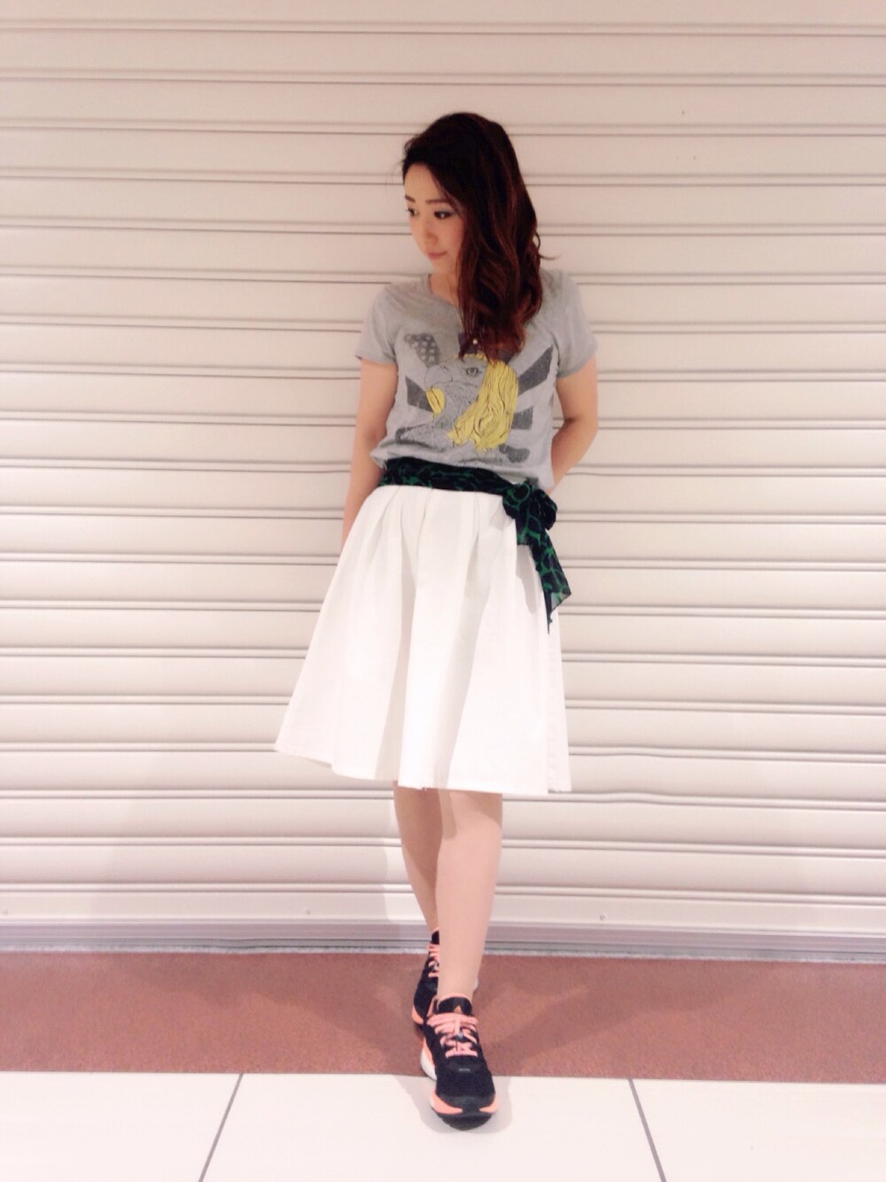 このティシャツへの愛着がすごくて♡ 鷹に金髪が生えてるんだけど、 お揃いの髪型にしてみた♡笑 遊び心のあるデザインで、 斬新で個性的なティシャツ♡ かっこいい♪ スニーカーはランニングシューズ。 走るのサボってるけどね。笑