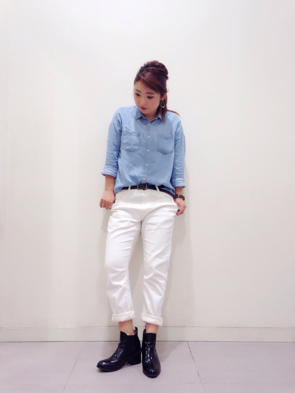 テンセルデニムビックシャツ 使いやすくてびっくり! 夏ぽくなったのでブーツで引き締めました