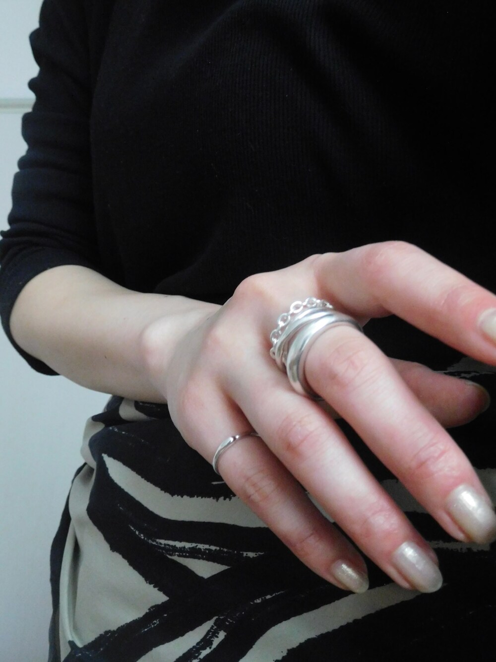 ボリュームがあるネクサスリングに、チェーンタイプのレンジリングを重ね付け🍃