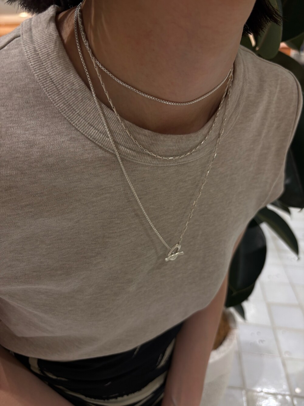 長さがあるポウムラリエットは、首にピタッと沿わせながら間にもう1点ネックレスを追加するスタイルもおすすめです✨