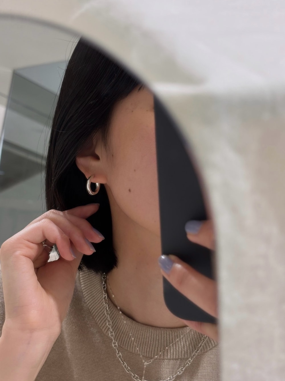 ヘアスタイル問わず、合わせやすいシンプルなフープピアスです✨
