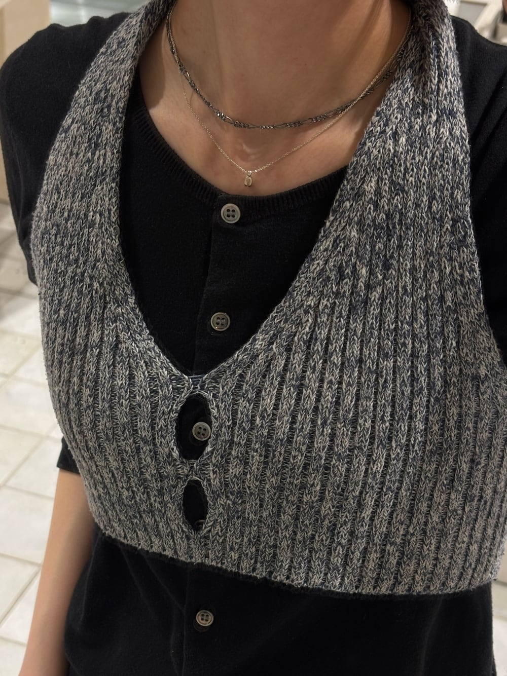 メンズライクな雰囲気がつくれるクローシェネックレス🖤 短めにつけ、チョーカー風なスタイルに。 好きな位置でとめ、 長さを変えていただけます。