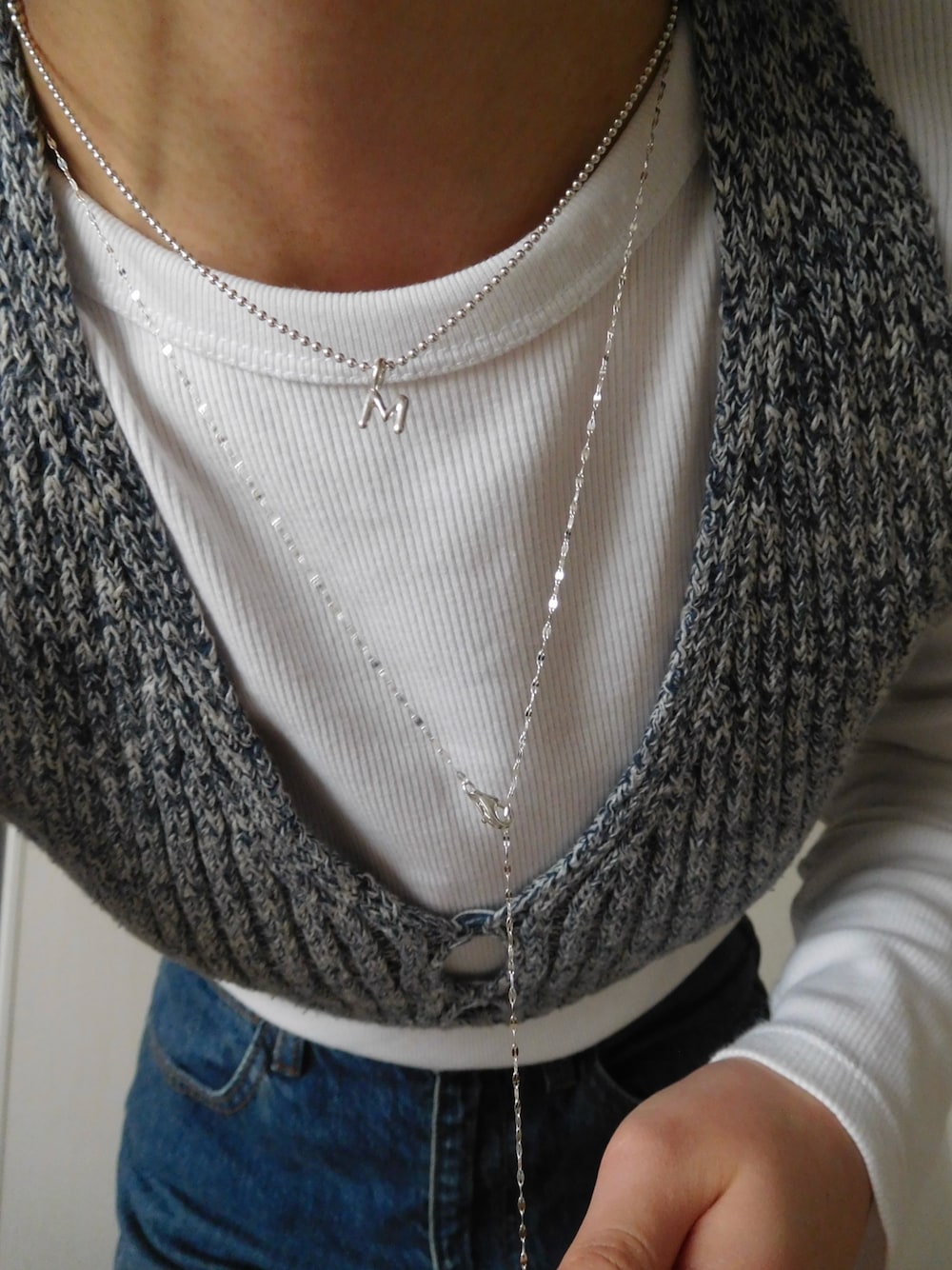 40cmのボールチェーンコンビネックレスに、アルファベットチャームをカスタム✨🔤 チャームをつけることでお洋服の中に隠れることなく、着用ができます。