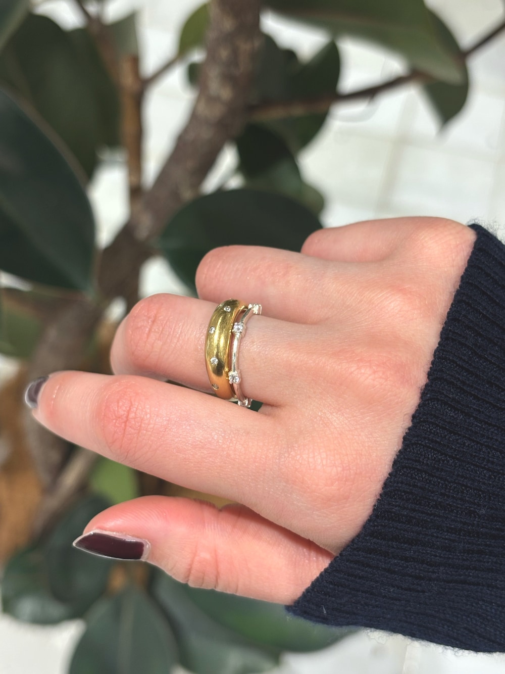 ジルコニアシリーズの重ねづけ✨ さりげなく手元を華やかにしてくれるアイテムです。 着用サイズ ・ポルカリングGD 11号 ・ルクスリングSV 11号