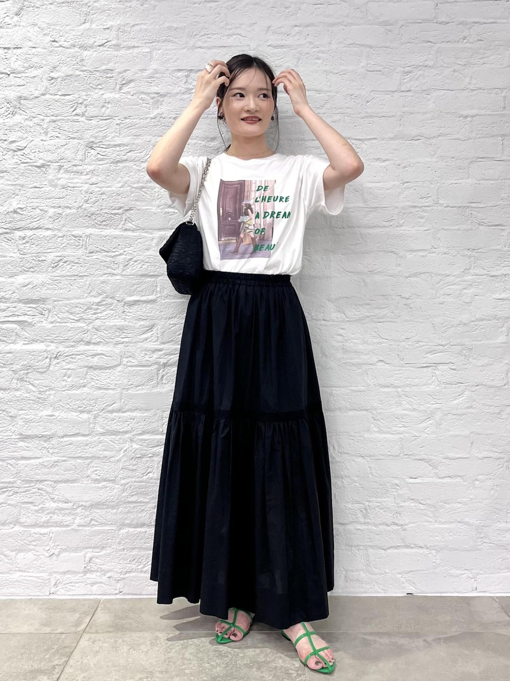 Tシャツをフレアスカートと合わせて 女性らしいコーデにしてみました。 コラボTシャツのロゴのグリーンを拾って サンダルもグリーンで合わせて統一感を♩ ゆったりめなTシャツ×ギャザースカートは どこかほっこりしてしまいがちなので、 ヘアはスッキリまとめ、ポインテッドのサンダルで引き締めました。 骨格、顔、カラー診断は、 店舗スタッフが診断できますので 是非店頭にてお気軽にご相談ください♪ ___________________ お気に入りのshop、staff、stylingは ♡を押していただければ【お気に入り】から すぐにご覧いただけます◎ ___________________ LINEで在庫のお問い合わせや商品、コーディネートのご相談など是非お気軽にお問い合わせくださいませ。 LINEでららぽーと愛知東郷VISスタッフにご相談は【友だち追加】をタップ!! <a href="https://lin.ee/Sax0lZ8"style="background:url(https://scdn.line-apps.com/n/line_add_friends/btn/ja.png); background-size: contain; display: block;width: 116px;height: 36px; margin:.5em 0;"></a>