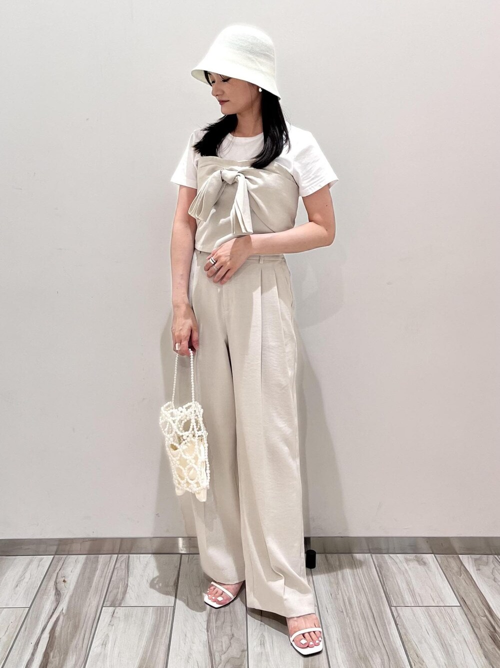 ホワイト系でまとめた、ワントーンコーデです。 セットアップできちんと感がありながらも バケハとパールバッグで遊び心をプラスしました♩ 骨格、顔、カラー診断は、 店舗スタッフが診断できますので 是非店頭にてお気軽にご相談ください♪ ___________________ お気に入りのshop、staff、stylingは ♡を押していただければ【お気に入り】から すぐにご覧いただけます◎ ___________________ LINEで在庫のお問い合わせや商品、コーディネートのご相談など是非お気軽にお問い合わせくださいませ。 LINEでららぽーと愛知東郷VISスタッフにご相談は【友だち追加】をタップ!! <a href="https://lin.ee/Sax0lZ8"style="background:url(https://scdn.line-apps.com/n/line_add_friends/btn/ja.png); background-size: contain; display: block;width: 116px;height: 36px; margin:.5em 0;"></a>