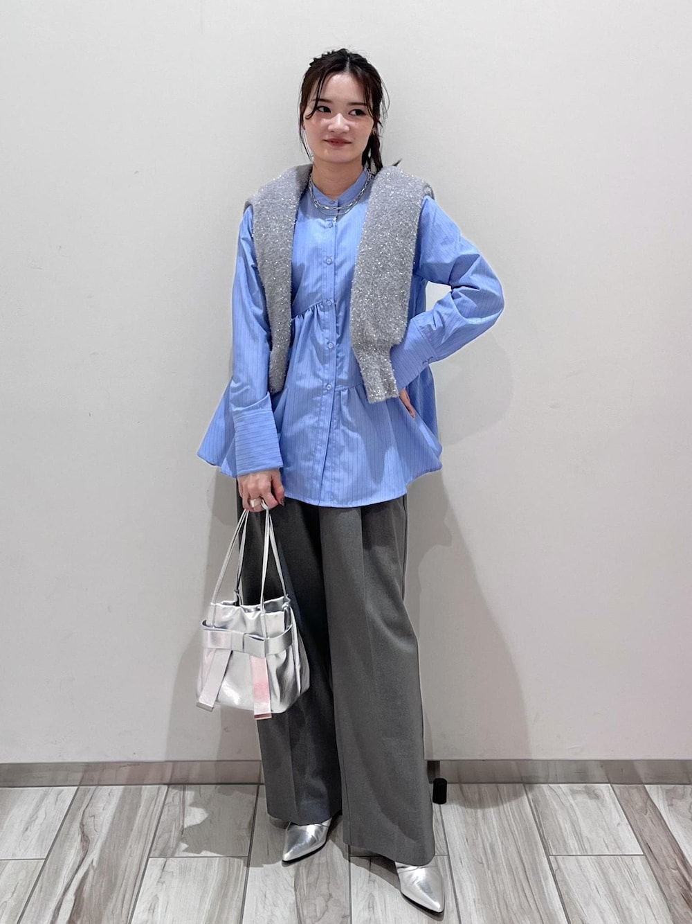 gray系でまとめたコーデです。 体のラインを拾わない着こなしは、 足先を尖った靴にすると垢抜けて見えるのでお勧めです◎ 敢えて高めのポニーテールで女性らしさをプラス♡ 骨格、顔、カラー診断は、 店舗スタッフが診断できますので 是非店頭にてお気軽にご相談ください♪ ___________________ お気に入りのshop、staff、stylingは ♡を押していただければ【お気に入り】から すぐにご覧いただけます◎ ___________________ LINEで在庫のお問い合わせや商品、コーディネートのご相談など是非お気軽にお問い合わせくださいませ。 LINEでららぽーと愛知東郷VISスタッフにご相談は【友だち追加】をタップ!! <a href="https://lin.ee/Sax0lZ8"style="background:url(https://scdn.line-apps.com/n/line_add_friends/btn/ja.png); background-size: contain; display: block;width: 116px;height: 36px; margin:.5em 0;"></a>