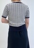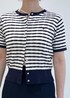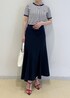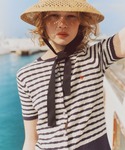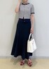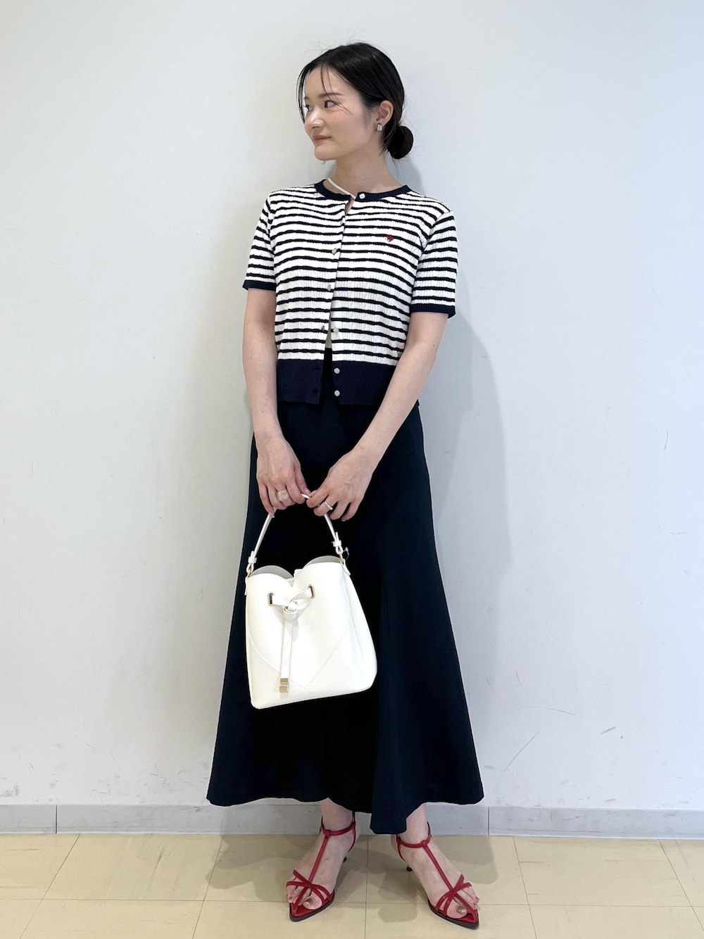 夏の定番な、マリンテイストのコーデです。 POLOカーディガンの刺繍の赤を拾って 足元にも赤をチョイス♩ カーディガンは下ボタン2つ開けて、抜け感をプラス。 ハートバッグでより女性らしい雰囲気に♡